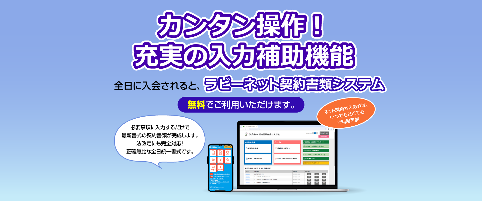 さらに物件情報を登録・検索する「ラビーネット登録・検索システム」の3つで構成されています。